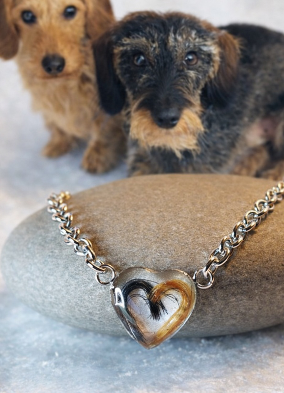 Diese spezielle Art der Verarbeitung mit Kunstharz ermöglicht es mir auch das Fell deines geliebten Tieres tragbar zu machen.